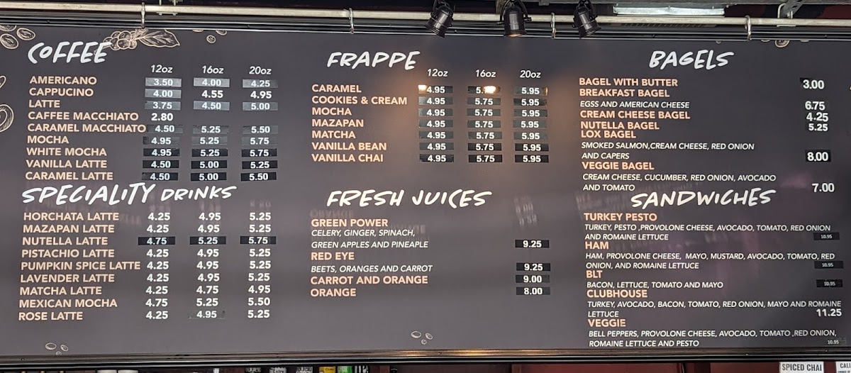 The coffee menu features classic favorites like Americano, Cappuccino, and Mocha, making it the perfect spot for a caffeine kick. For those craving something refreshing, try their unique Frappe options, including Cookies & Cream and Matcha.